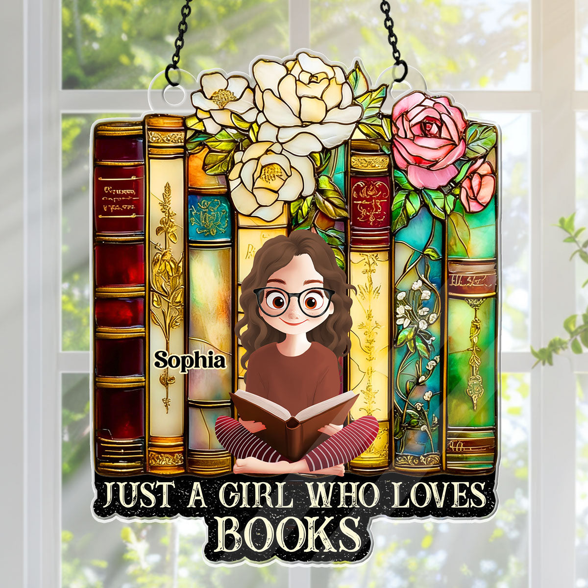 • Just A Girl Who Loves Books - Personalized Acrylic Suncatcher - Gift For Her, Book Lovers | CLB2 HH01