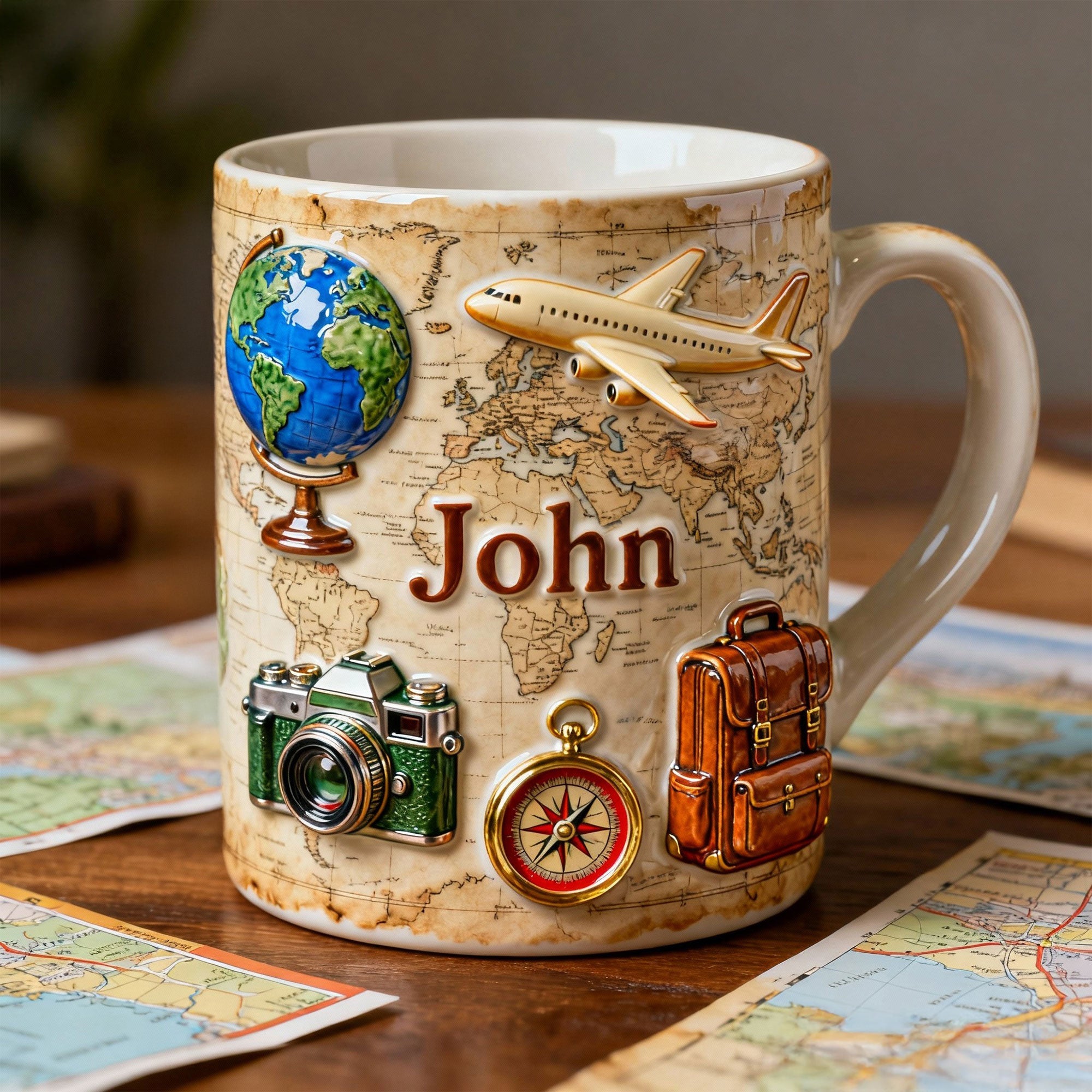 • Just Loves Travelling - Personalized White Edge-to-Edge Mug - Gift For Travel Lovers HH01