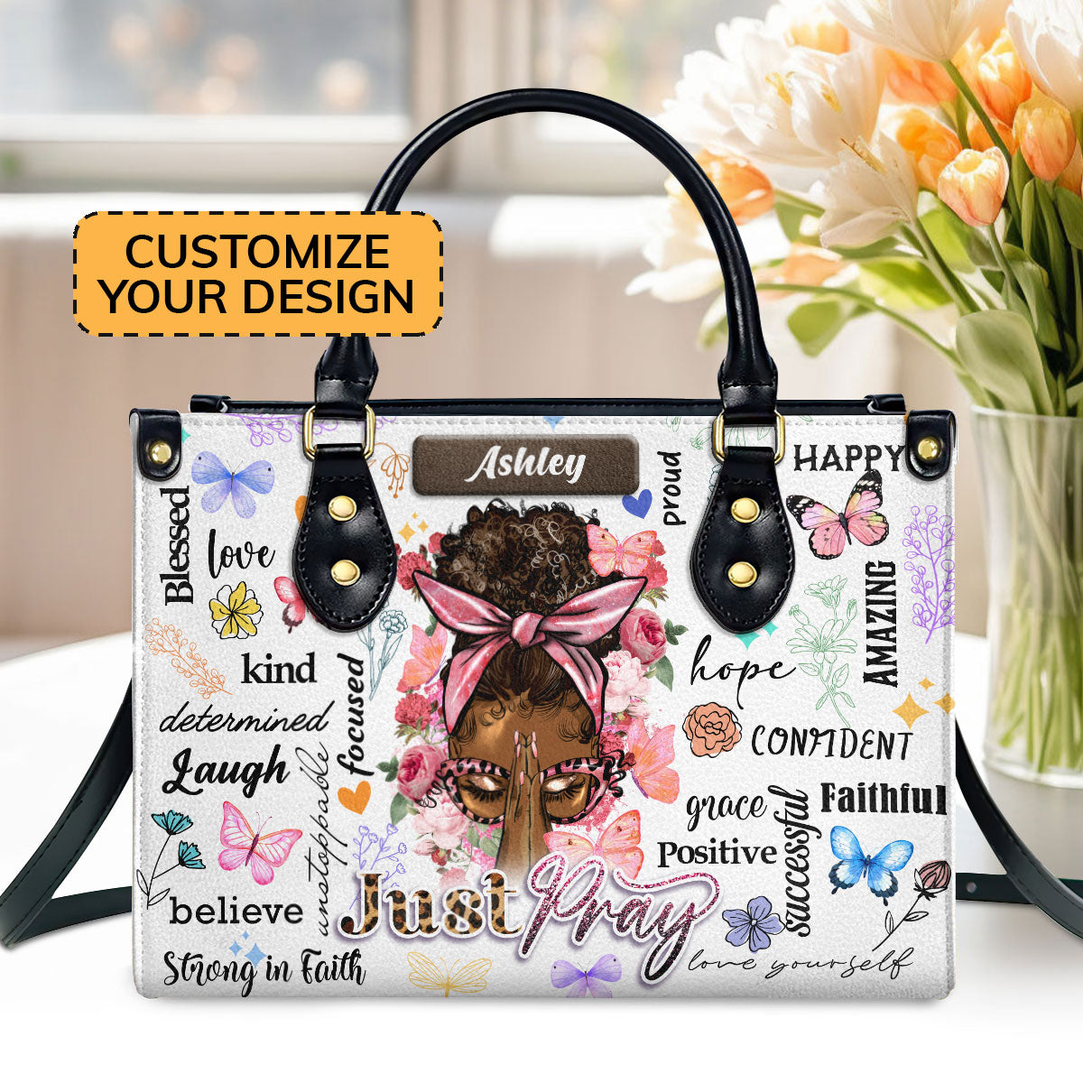 Just Pray Butterfly Floral Purse - Personalized Leather Handbag - Gift For Women HD95