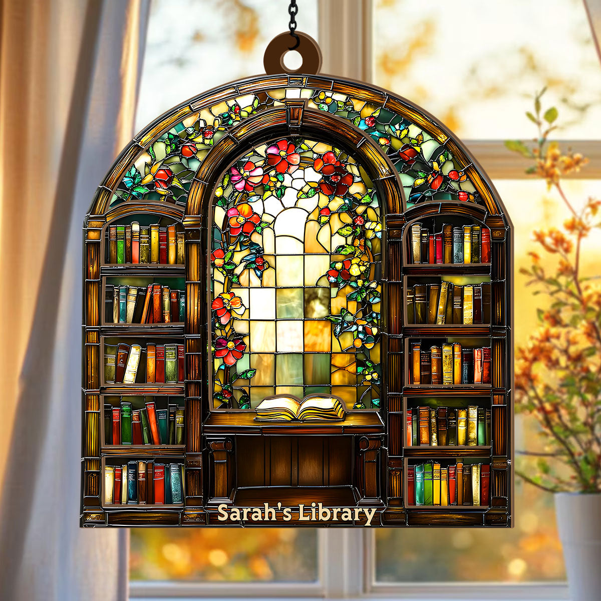Library Bookshelf - Personalized Window Hanging Suncatcher