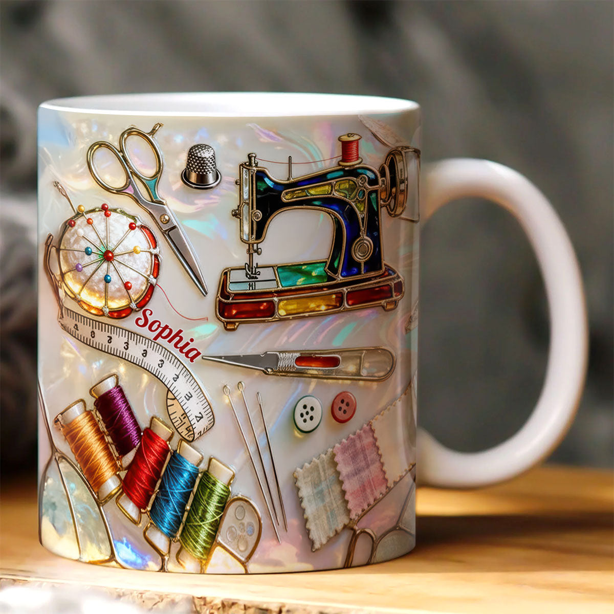 Love Sewing Stained Glass - Personalized White Edge-to-Edge Mug - Gift For Her HH01