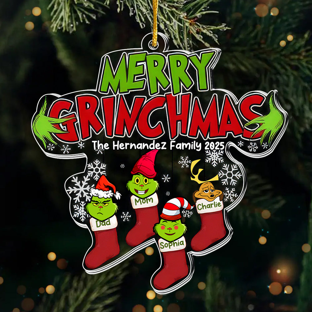 Merry Grinchmas Hohoho - Gift For Family Members - Personalized Acrylic Ornament - CL42 NA94 ver2