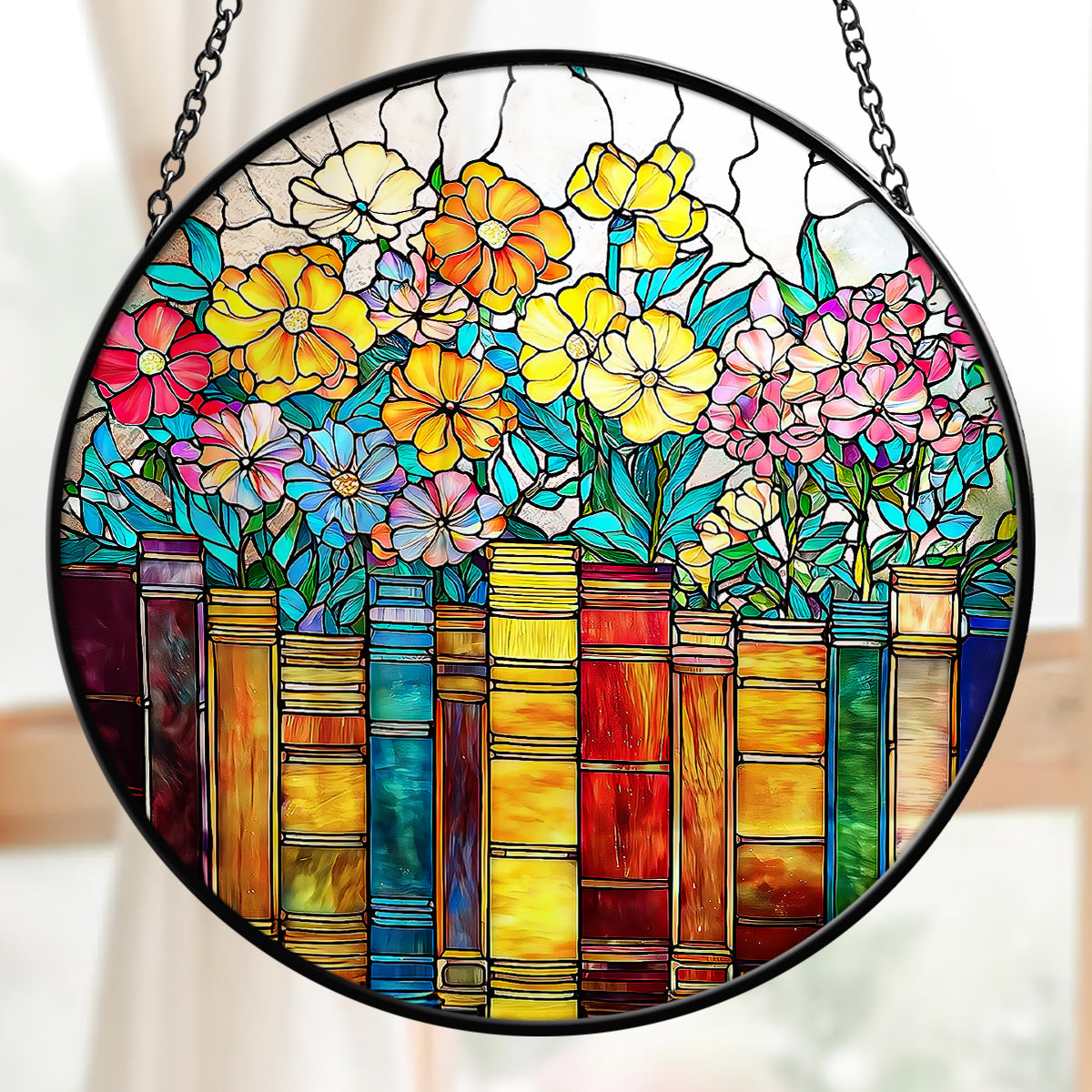 • My Colorful Floral Bookcase - Personalized Stained Glass Window Hanging Suncatcher - Gift For Book Lovers, Her HH01