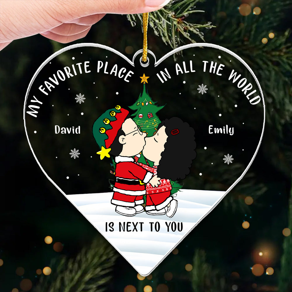 My Favorite Place In All The World - Personalized Heart Shaped Acrylic Ornament - Christmas Gift For Couple | CL45 NL122