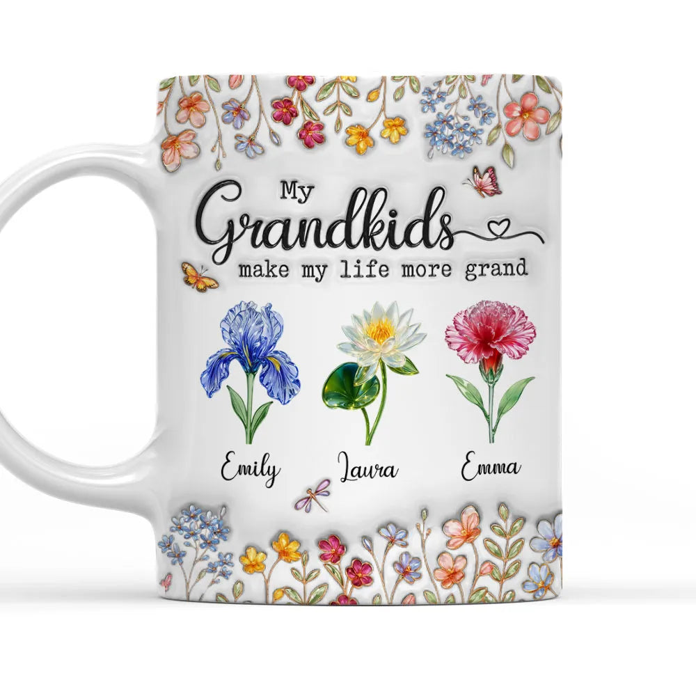 My Grandkids Make My Life More Grand - Personalized White Edge-to-Edge Mug - Gift For Grandma, Grandpa, Kids, Family HH01