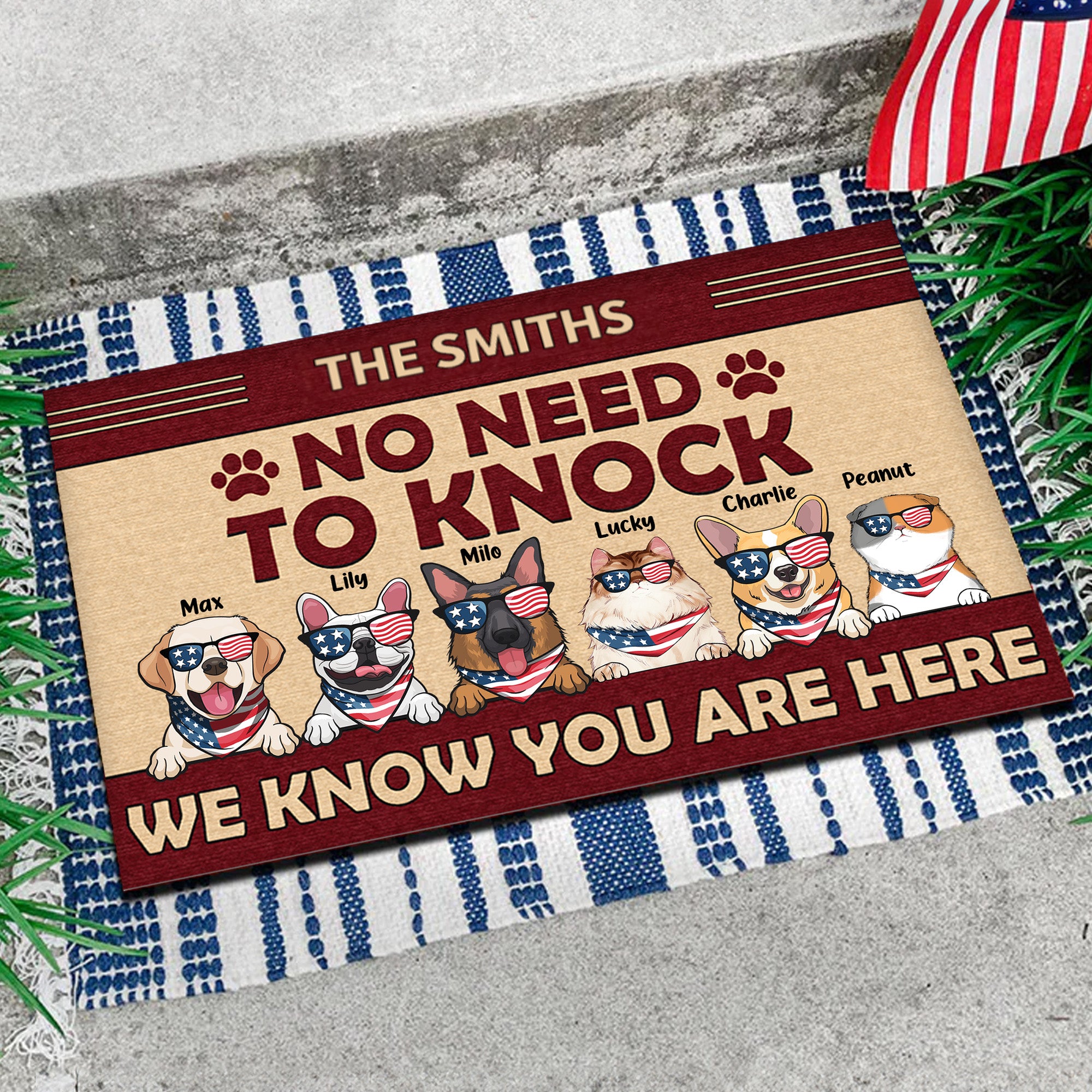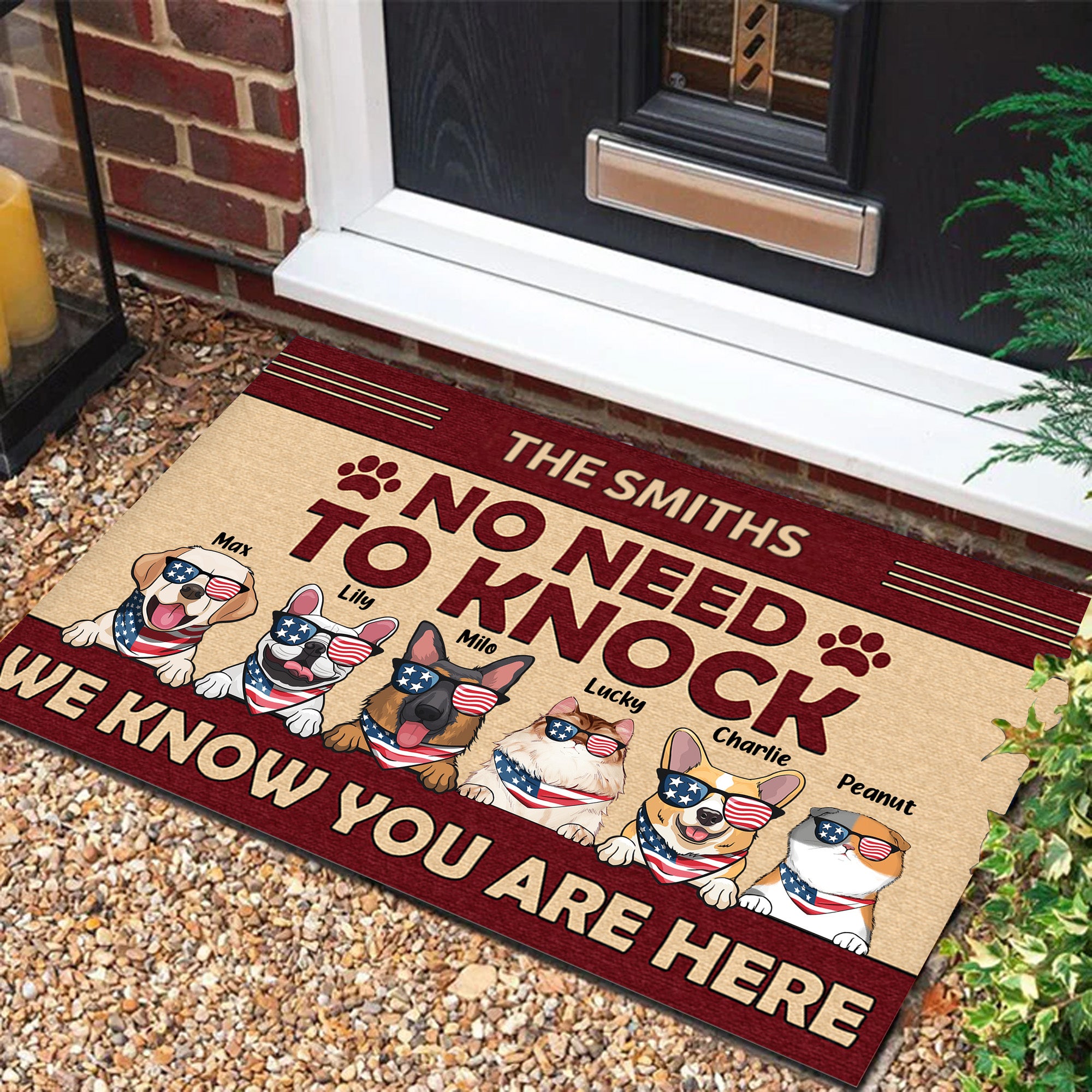 • No Need To Knock We Know You Are Here Red Version - Gift For Pet Lovers - Personalized Door Mat