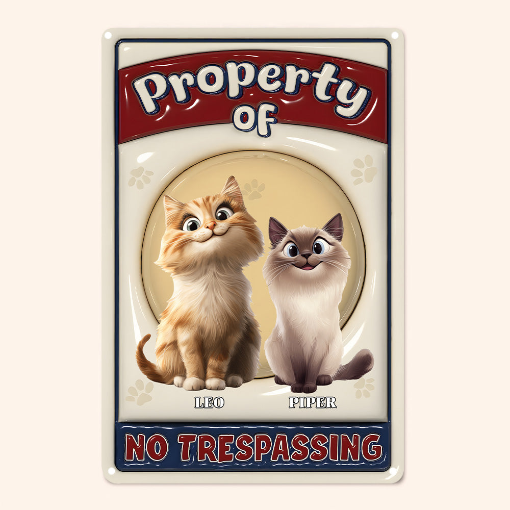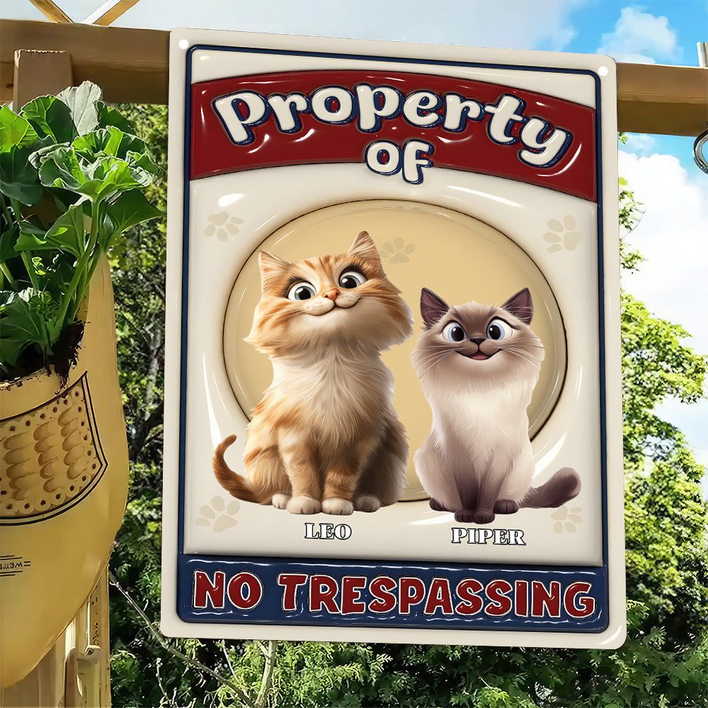 No Trespassing Cartoon Cat Version - Personalized 3D Inflated Effect Metal Sign - Gift For Cat Lovers | CLP15 NA94