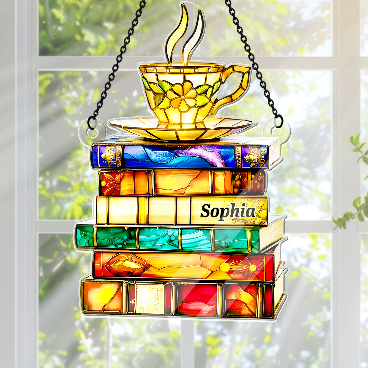 • Nostalgic Books And Tea - Personalized Acrylic Suncatcher - Gift For Book Lovers HH01