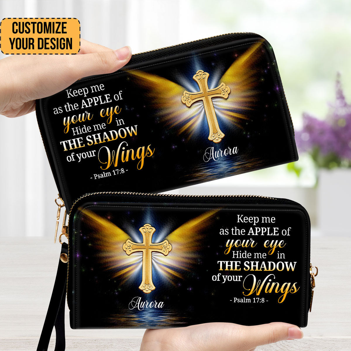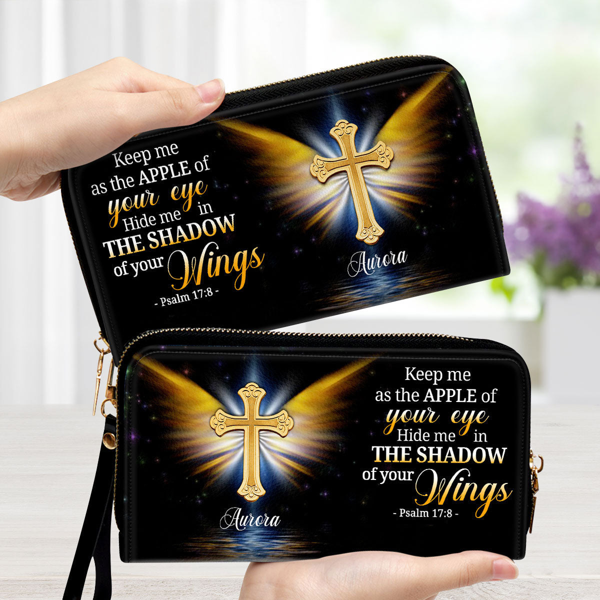 FamilyStore's Personalized Leather Clutch Purse intertwines faith and fashion, creating an uplifting accessory for Christian. Adorned with meaningful Bible verses, each cover carries a piece of your faith journey wherever you go. It's a profound reminder of love and strength within you. Perfect for yourself or as a heartfelt religious gift for Christian Women on special occasions.