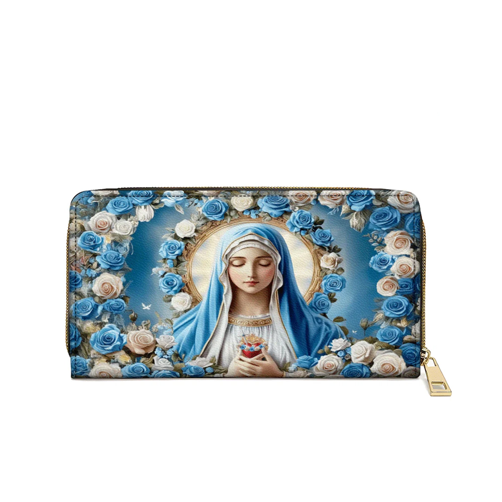 Our Lady Of Grace With Blue Rose - Christian Leather Wallet
