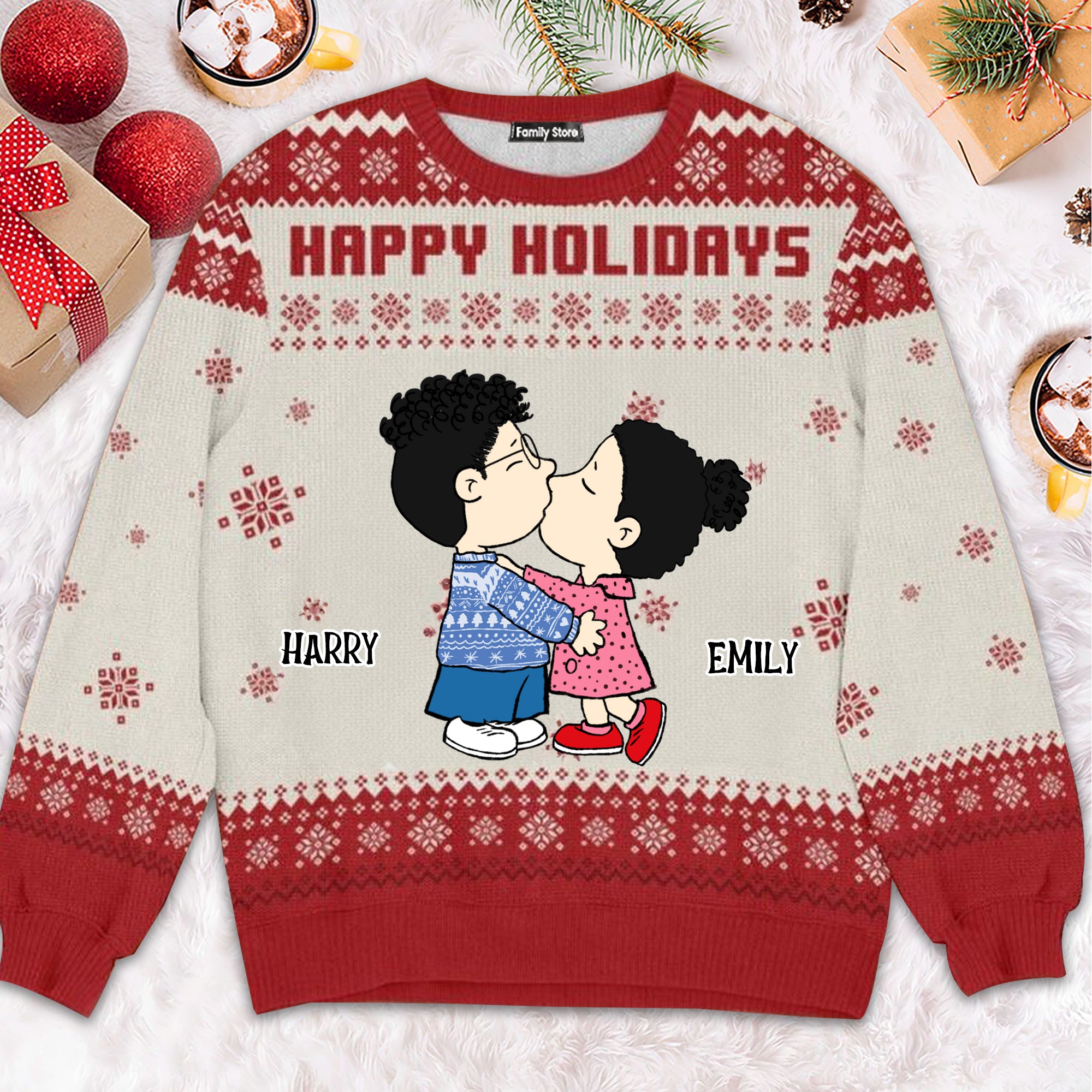 Peanut Snoopopy Happy Holidays - Personalized Ugly Sweatshirt - Gift For Couple, Husband Wife, Anniversary CL45 NH96
