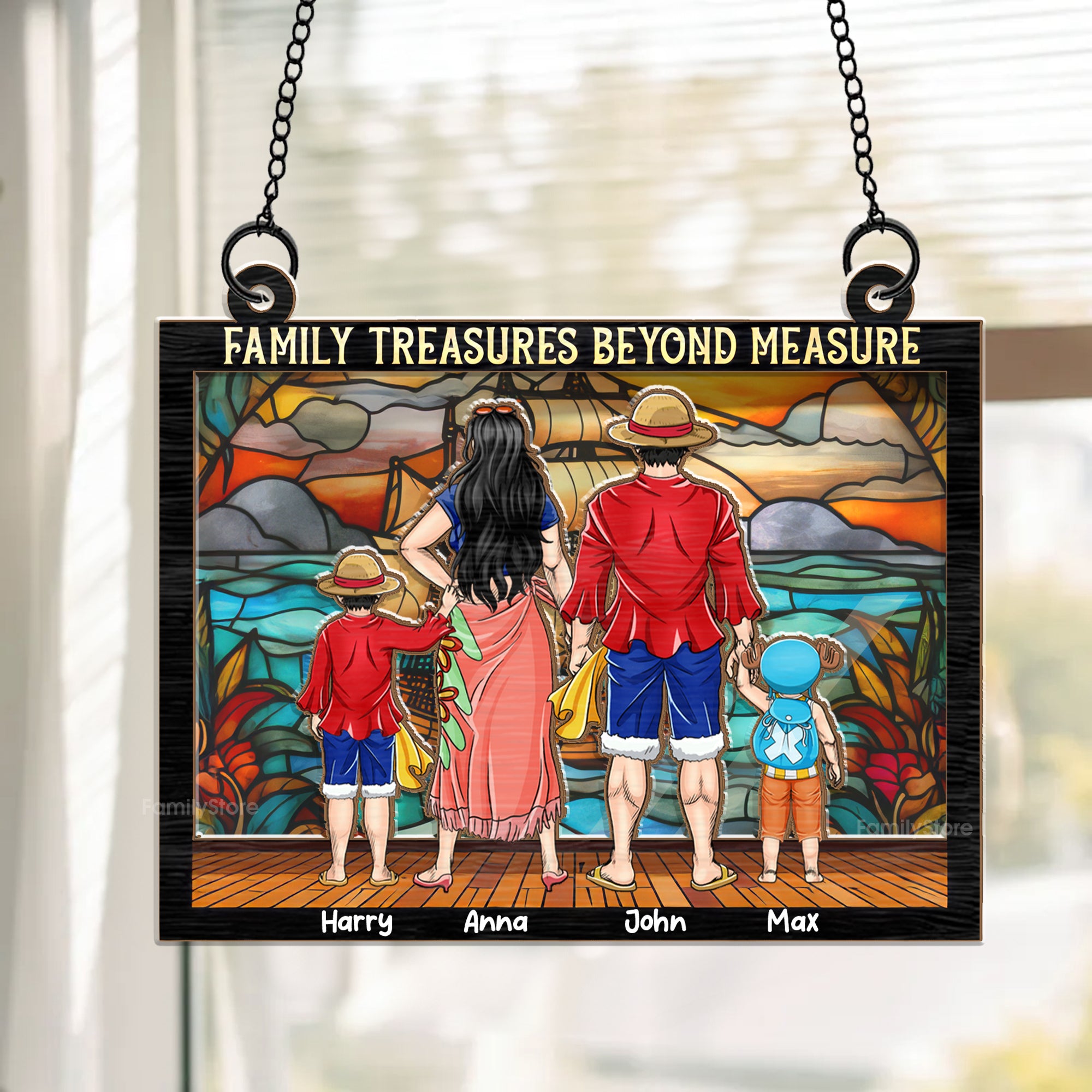 Pirate Family Family Treasures Beyond Measure One Piece - Personalized Window Window Hanging Suncatcher Ornament - Gift Christmas For Family Memmber, Gift For Mom, Gift for Dad - CL11 NH96