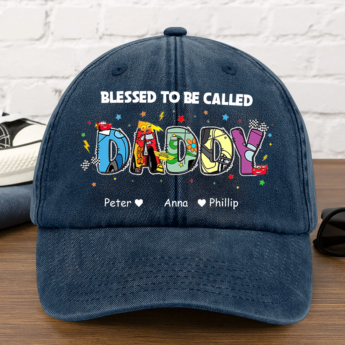 PT Blessed To Be Called Daddy Car - Personalized Vintage Washed Denim Cap - Gift For Dad, Grandpa
