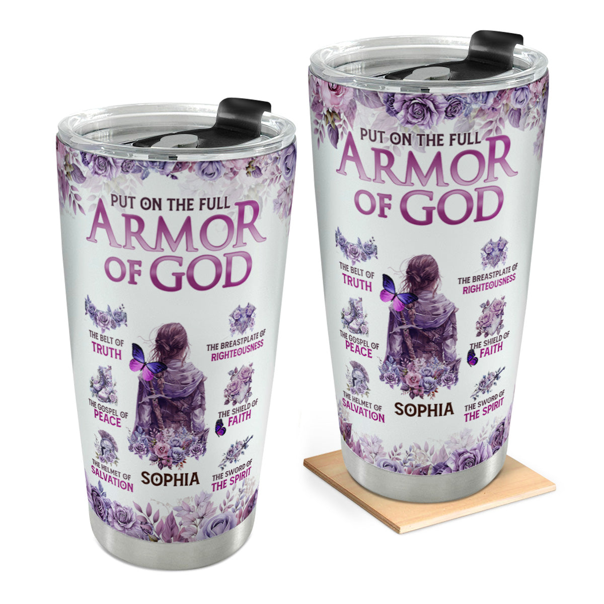 Put on the Full Armor of God & Floral - Personalized Stainless Steel Tumbler - Gift For Her HN02