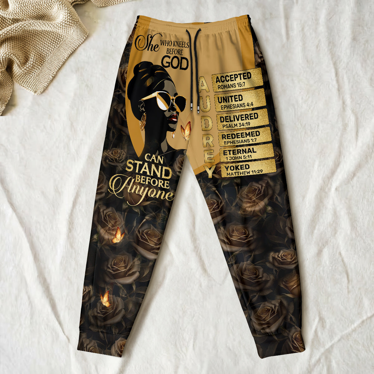 She Who Kneels Before God Can Stand Before Anyone - Personalized Sweatpants | TD118