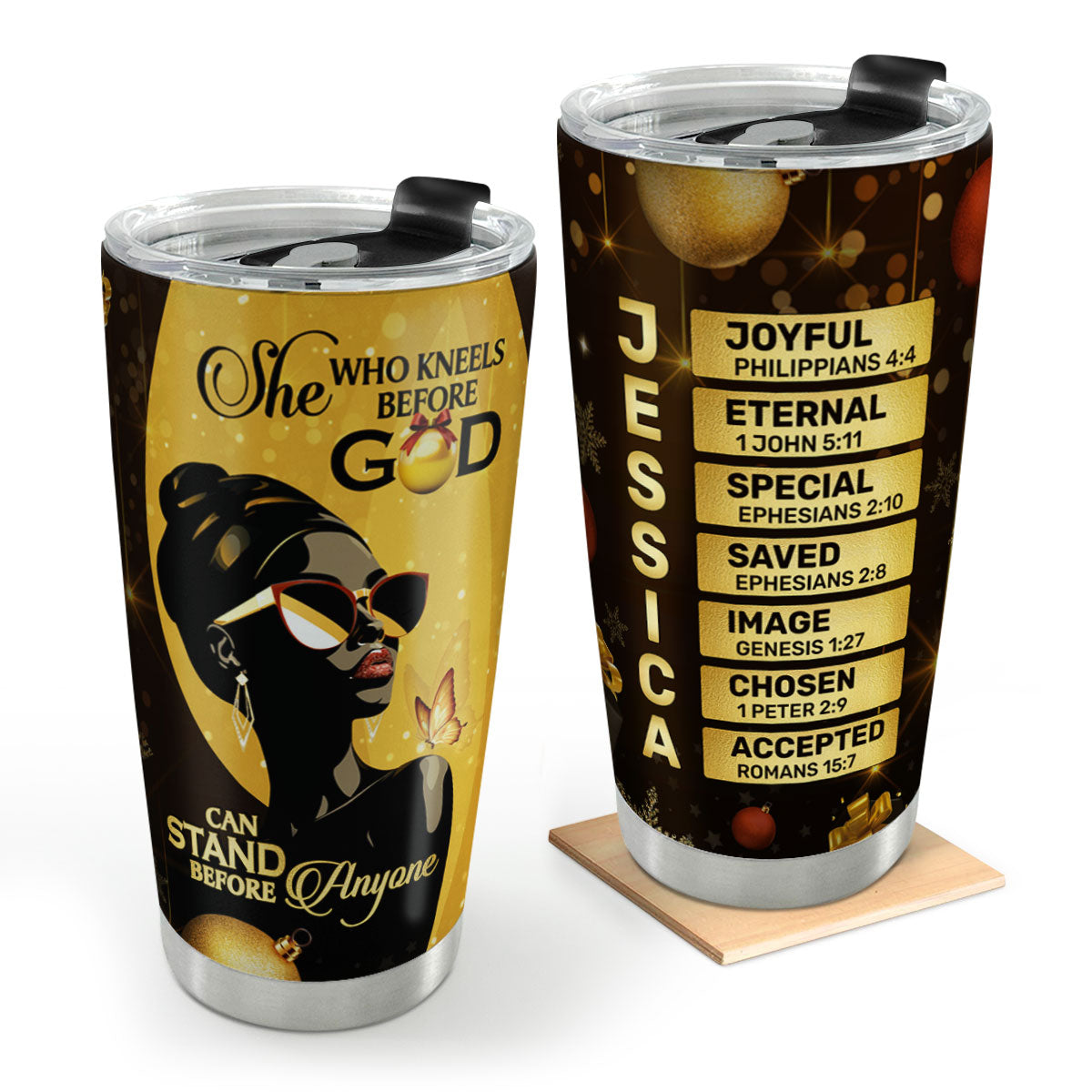 She Who Kneels Before God Can Stand Before Anyone - Personalized Tumbler - Gift For Christmas HL128