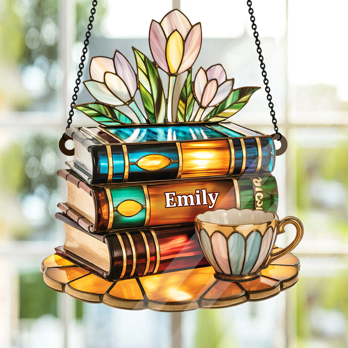 Tea Cup And Library - Personalized Window Hanging Suncatcher