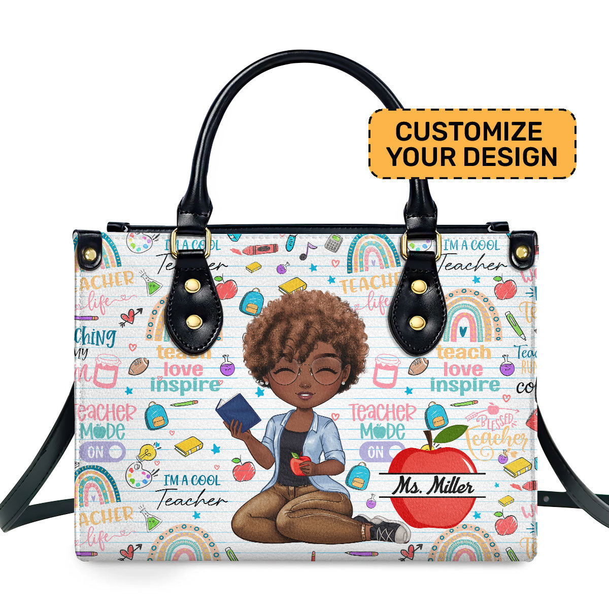 Teach Love Inspire Apple Custom – Personalized Leather Handbag – Gift For Teacher | CLTC04 HH01