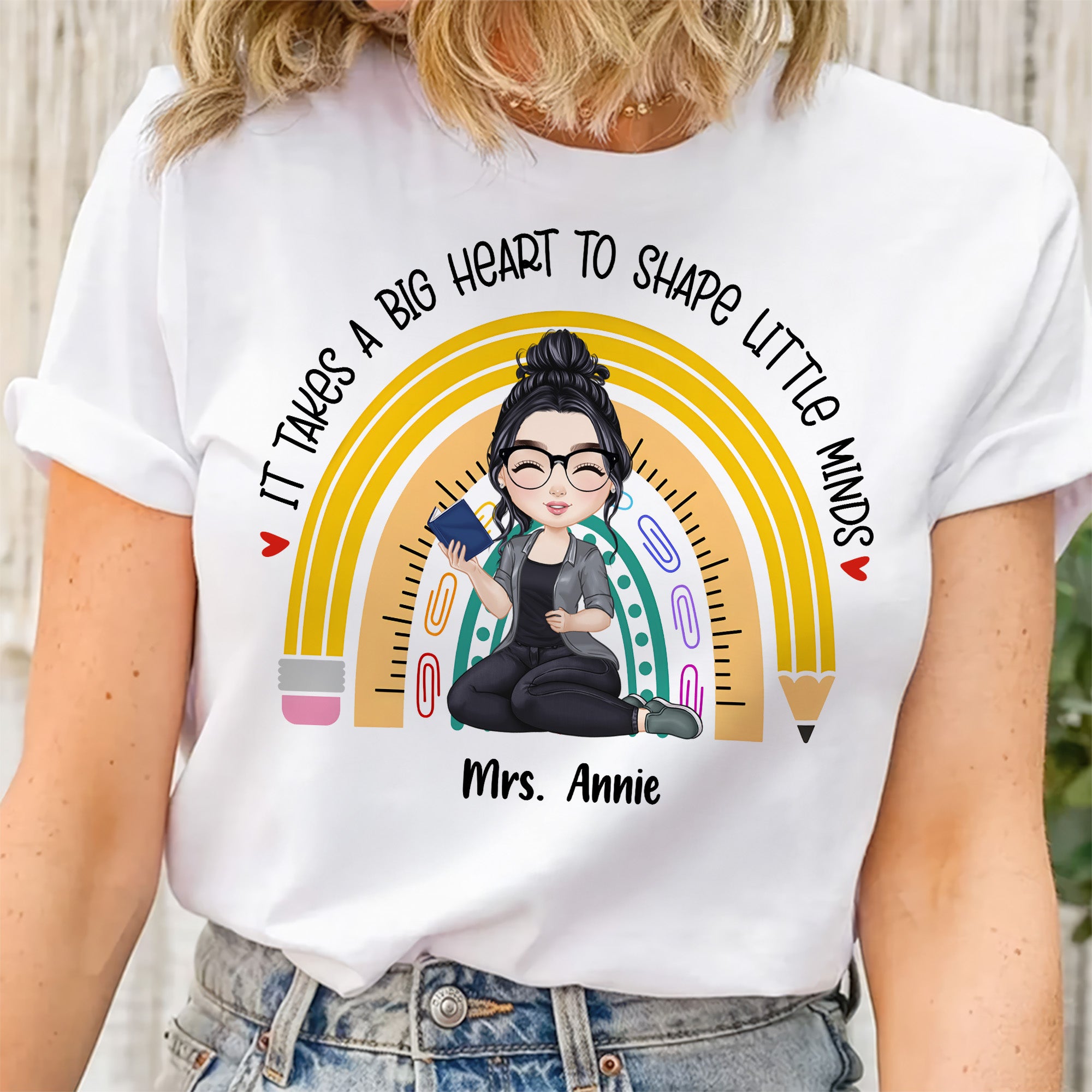 Teacher It Takes A Big Heart To Shape Little Minds - Personalized Shirt | CLTC04 TD118