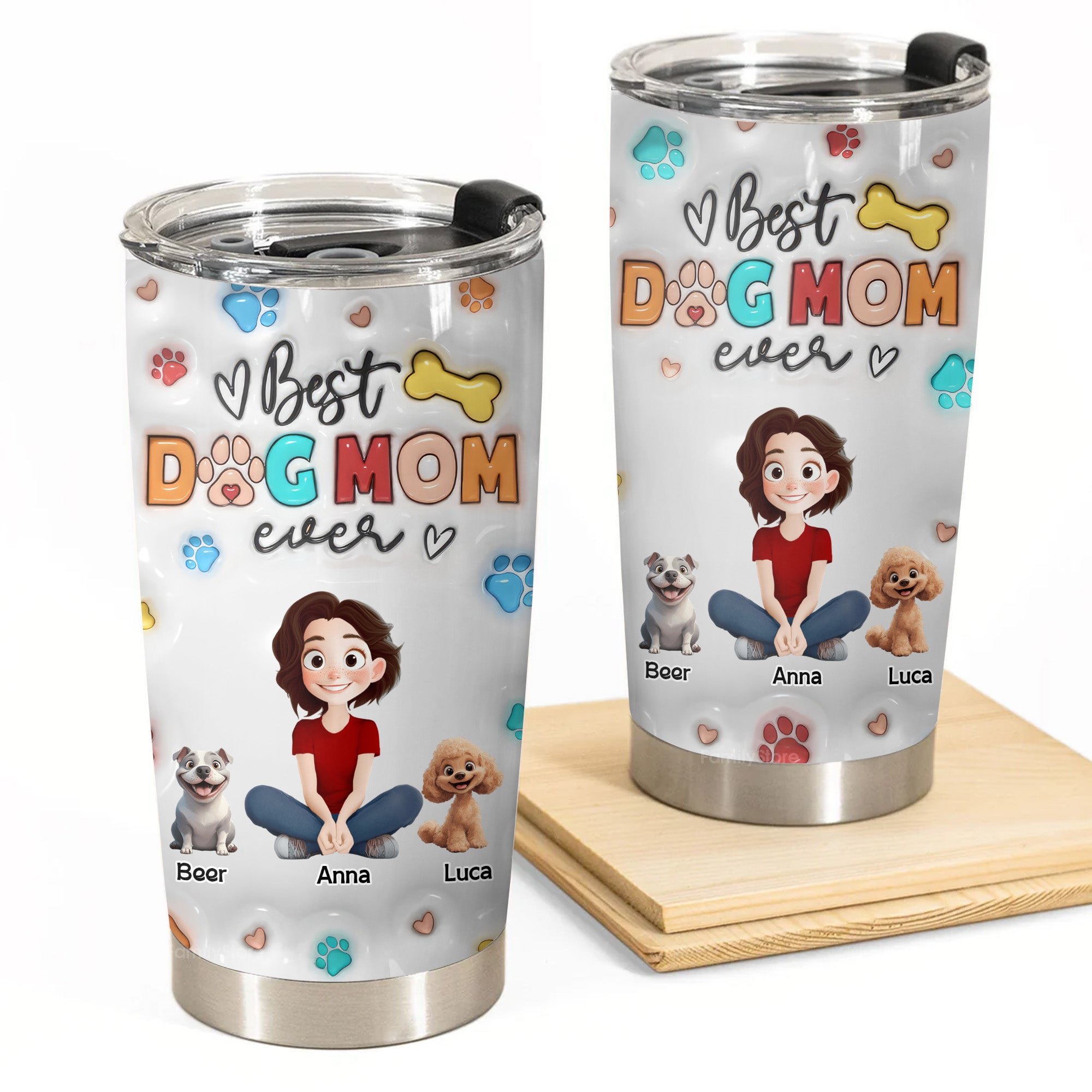 The Best Mom Of The Dogs 3D Inflated Effect Cartoon Dog - Personalized Tumbler Cup - Gift for Pet Owners, Pet Lovers, Dog Mom | CLP15 NH96