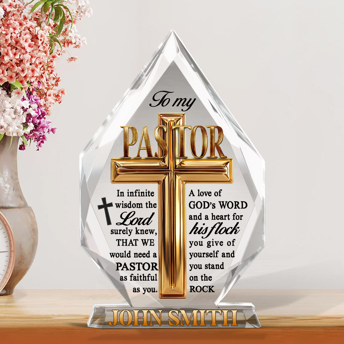 Package includes: A custom shaped acrylic plaque.