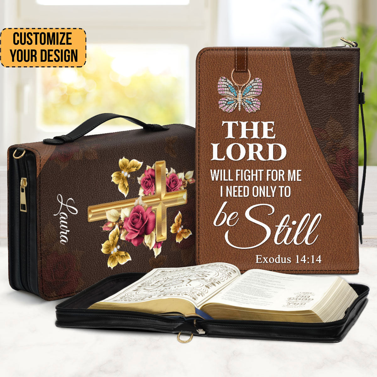 The Lord Will Fight For Me Floral Cross - Personalized Bible Covers - AT4081438