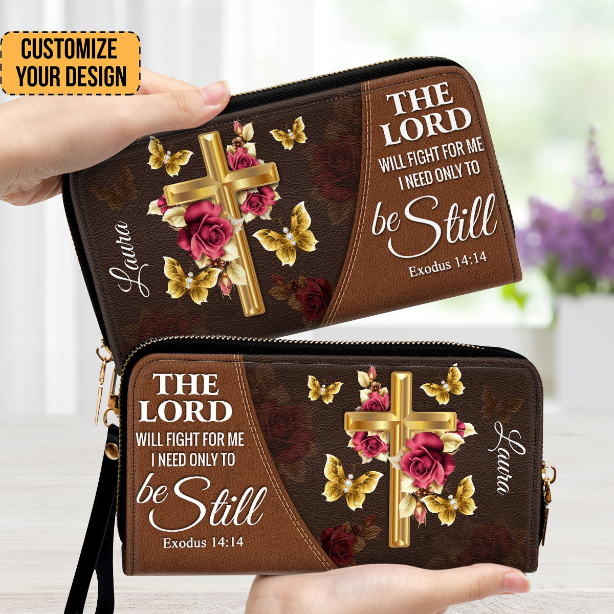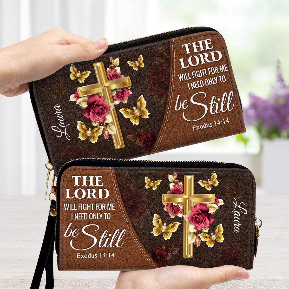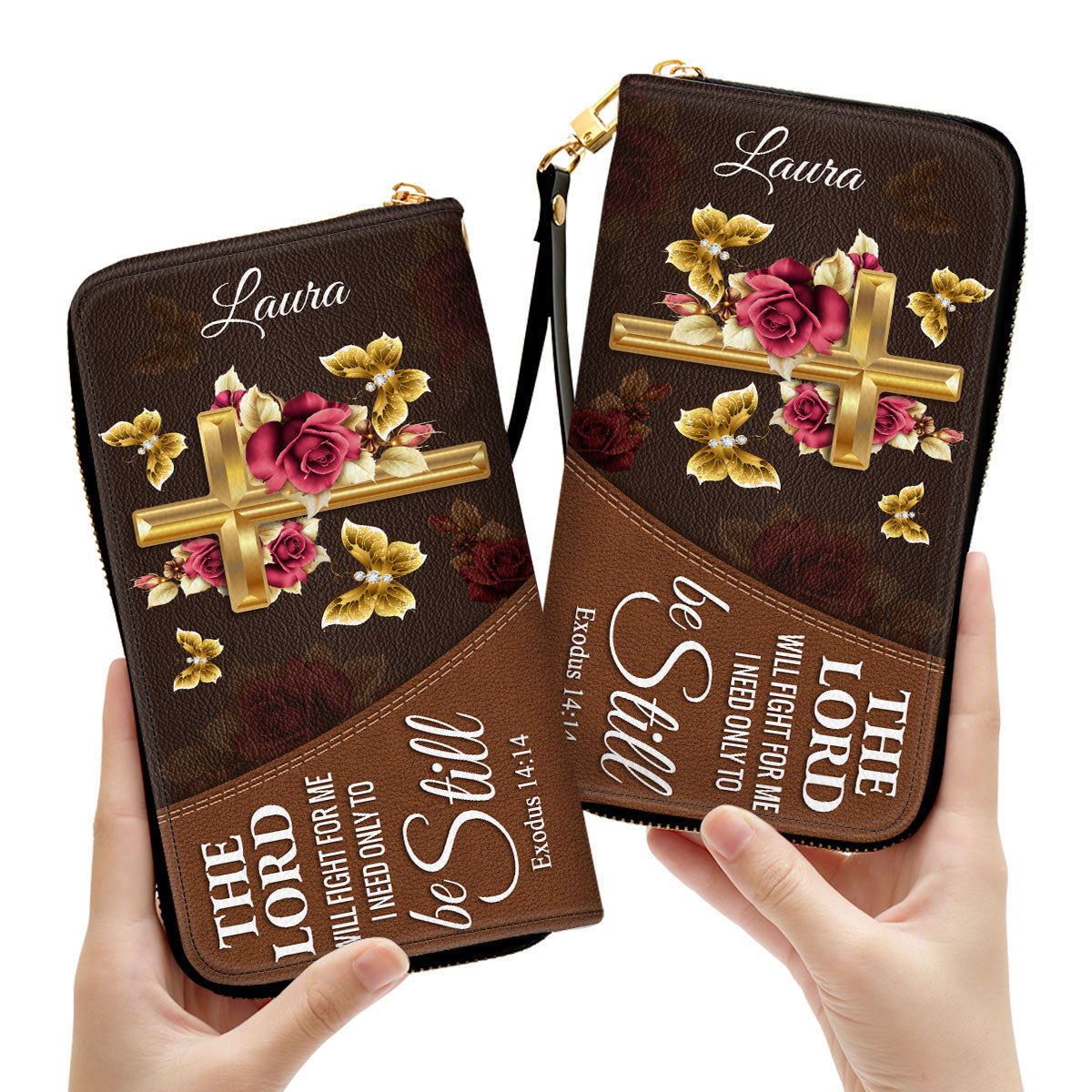 The Lord Will Fight For Me Floral Cross - Personalized Leather Long Wallets - AT4081438
