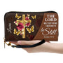 • The Lord Will Fight For Me Floral Cross - Personalized Leather Long Wallets - AT4081438