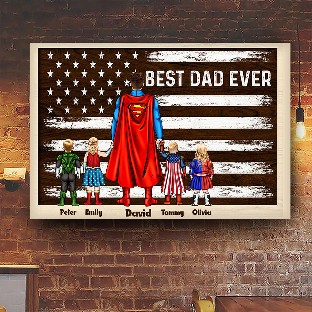 The Us Flag Best Dad Ever - Gift For Father's Day - Personalized Canvas Poster
