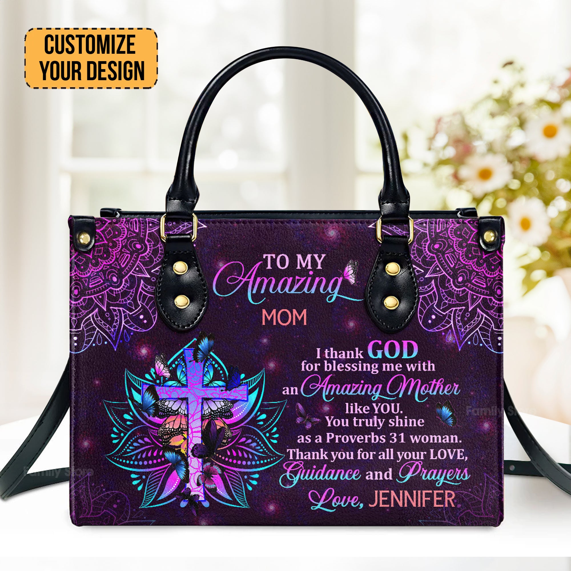To My Amazing Mom - Thoughtful Gift For Christians - Personalized Leather Handbag With Handle - AT4081235