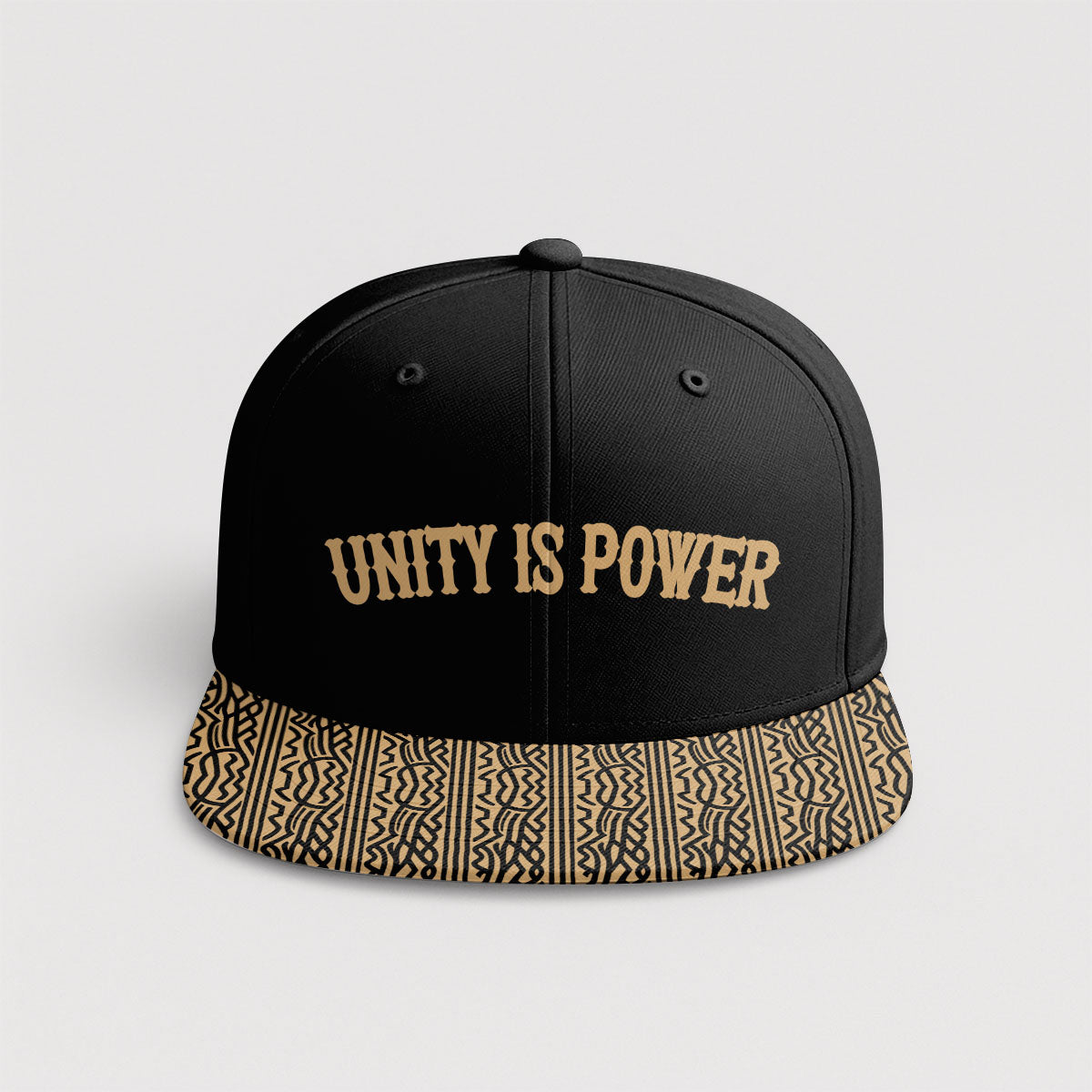 High-quality gold embroidery: “UNITY IS POWER” front and center