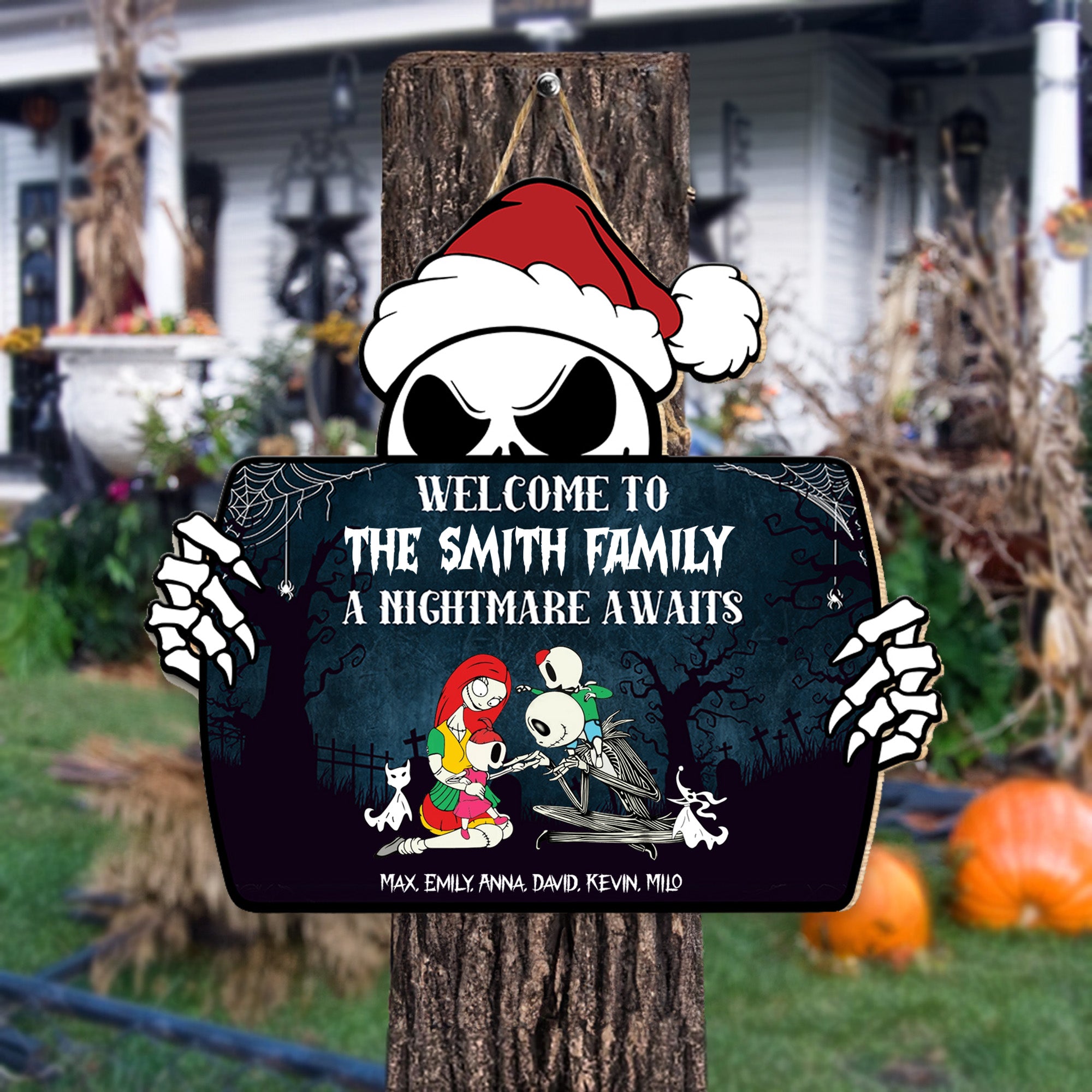 • Welcome To Our Family A Nightmare Await - Personalized Shaped Wood Sign - CL14 NA94