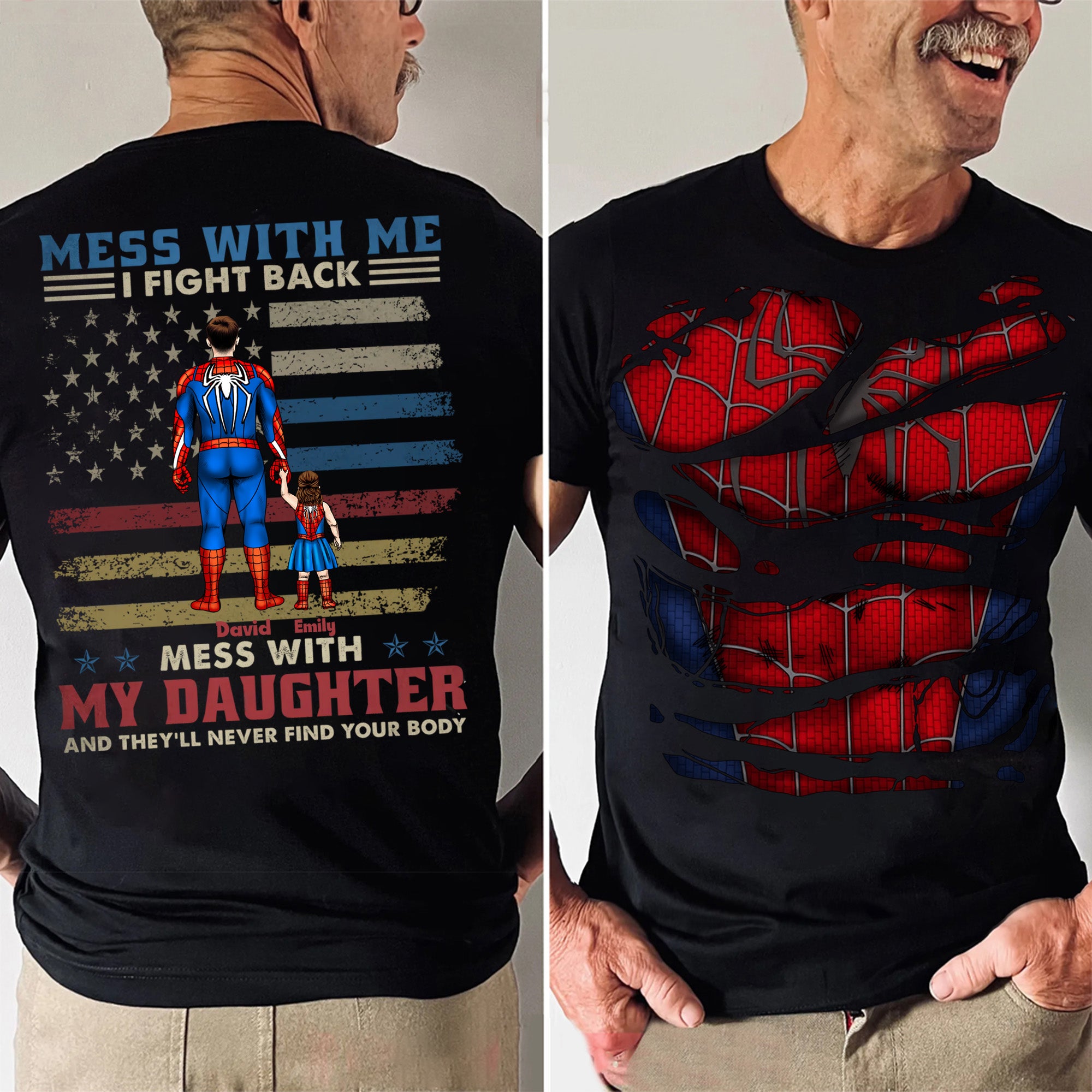 Super Hero Dad You Can Mess With Me But Don't Mess With My Son - Gift For Father's Day - Personalized Shirt 2 Side