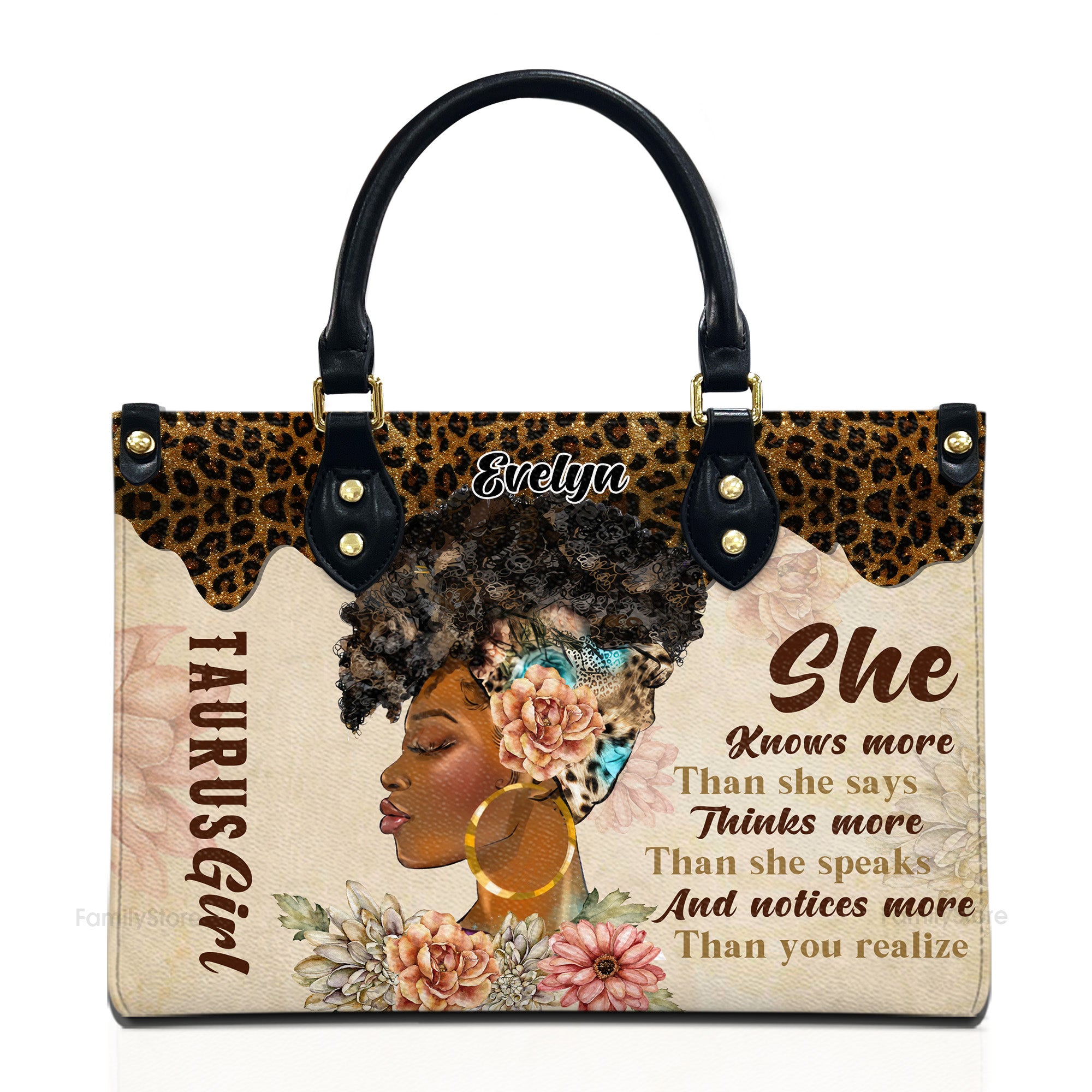 • Zodiac Woman Knows More Than She Says Thinks More Than She Speaks - Personalized Leather Handbag - Gift For Mother, Friend, Sister